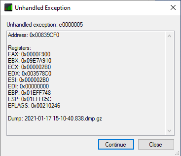 | Tags | Bug, Crash | ||||