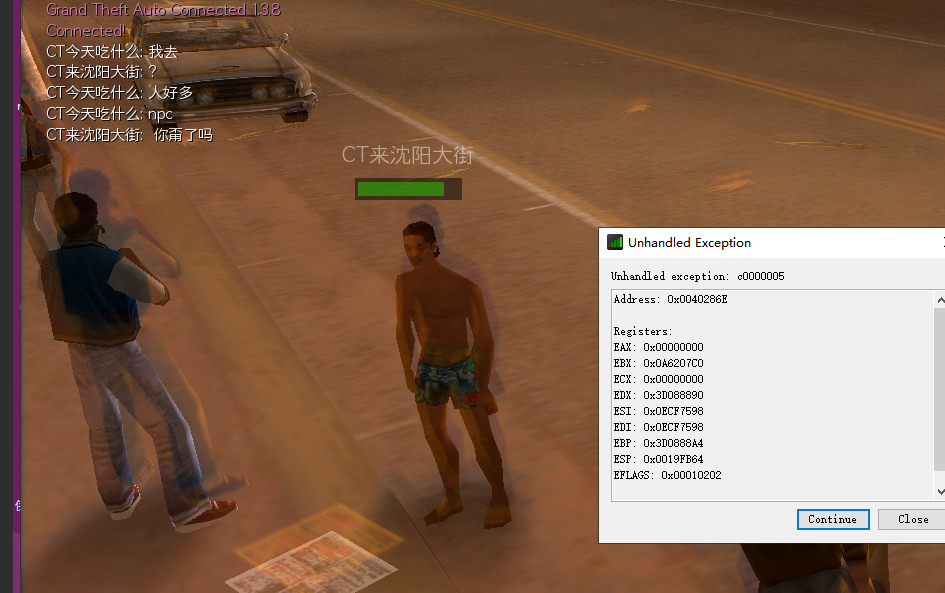 Unhandled exception at 0x0040286E in gta-vc.exe (+0x286e): 0xC0000005: Access violation reading location 0x3D0888B4.