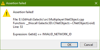 | Steps To Reproduce | Enable assertions in GTAC launcher settings, connect to a server, then disconnect. A dialog containing the message will immediately show. | ||||